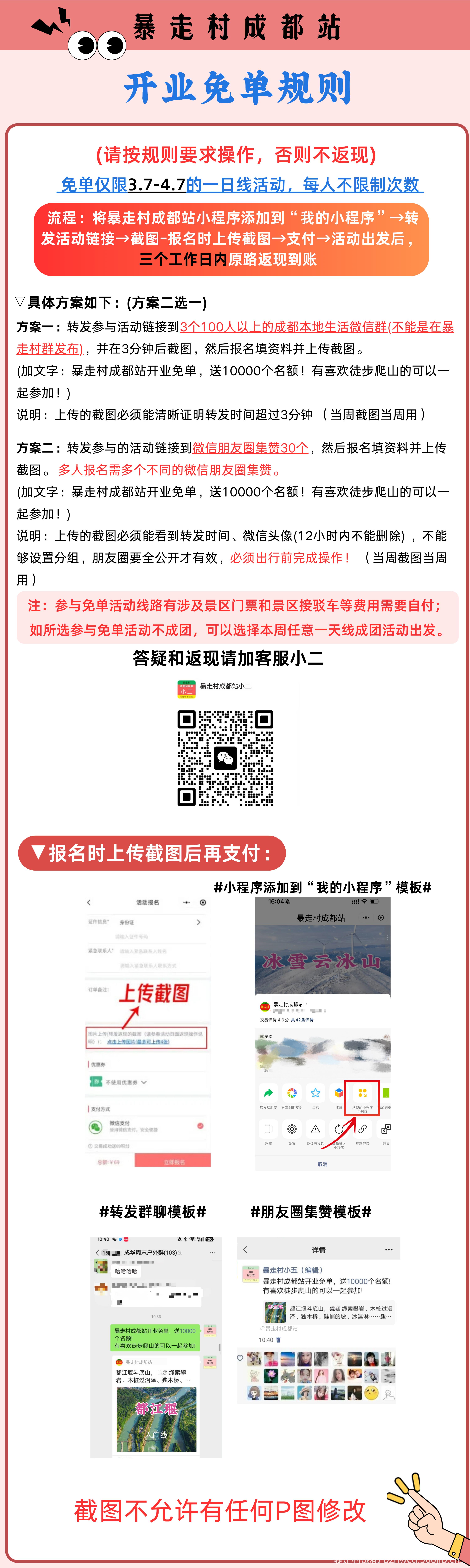 微信搜索【暴走村成都站】公众号关注或添加小程序,